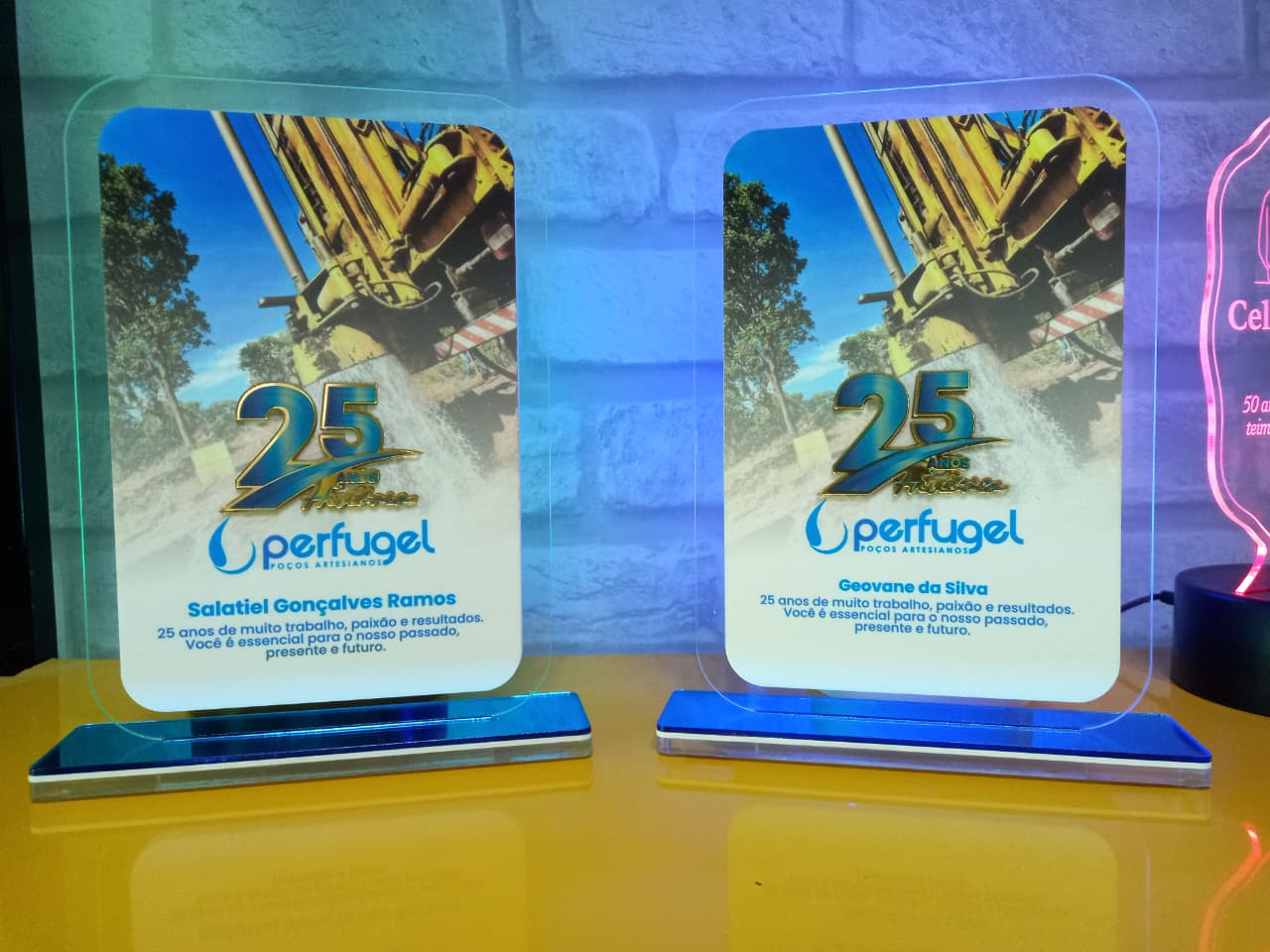 A gravação a laser no acrílico oferece detalhes precisos e elegantes, permitindo a aplicação de logotipos, nomes, datas e mensagens especiais com excelente definição. O resultado é um troféu leve, resistente e com aparência profissional.